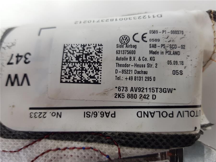 airbag lateral delantero derecho volkswagen golf vii berlina (bq1/be2)