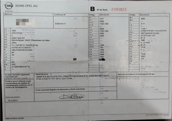 VehículoOpel Astra J Sedán (06.2012->) 1.7 Selective ecoFlex [1,7 Ltr. - 81 kW 16V CDTI]
